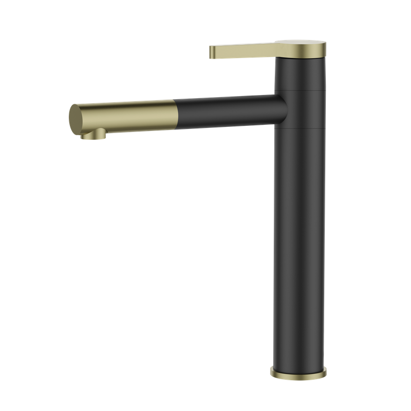 Selling Concise Black Matte Gold Handle Hot And Cold Water Faucet Basin With Ce Certificate