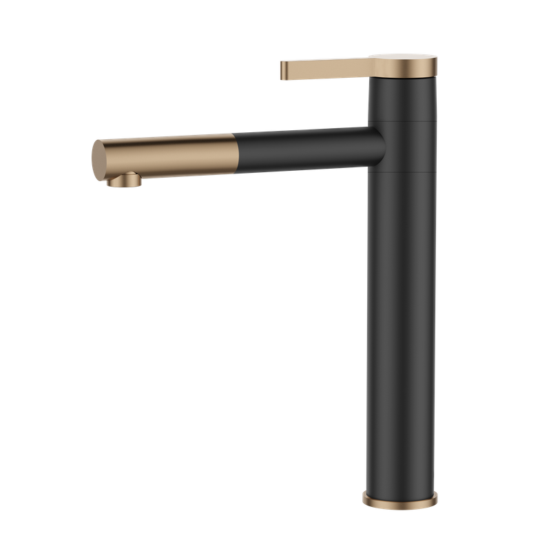 Selling Concise Rose Gold Black Handle Hot And Cold Water Faucet Basin With Ce Certificate