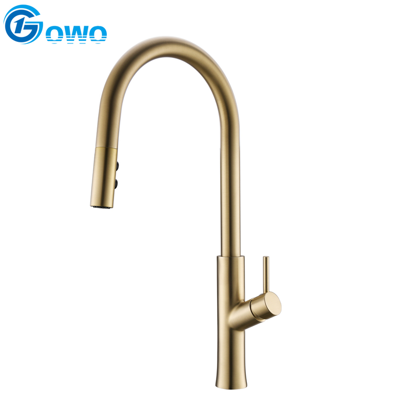 You are here: Home / Products / Other / Pull-out Kitchen Faucet / Brush Gold Color Brass Material Simplify Style Pull Down Sprayer Kitchen Faucet